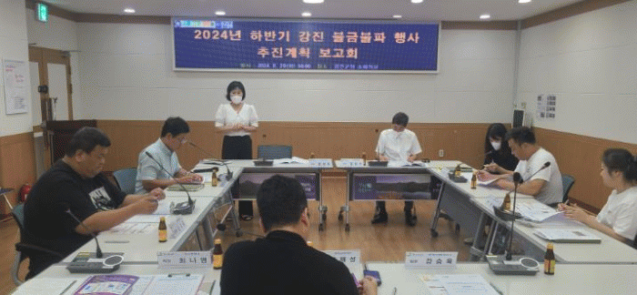 군은 하반기 행사를 위해 지난 20일, 강진군청 소회의실에서 부서별 관계자 9명이 참석한 가운데 ‘2024년 하반기 강진 불금불파 행사 추진 보고회’를 가졌다.