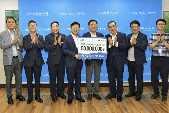 여수시에 따르면 중앙동 1·2통 지역은 현재까지 경로당이 없어 인근 빈집을 이용해 경로당처럼 운영해 왔으며, 이 소식을 들은 김영태 대표는 지난 22일 시장실을 방문해 경로당 건립을 위한 5천만 원 후원증서를 전달했다.