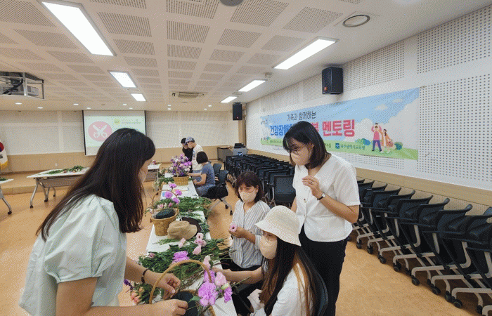 이날 참가자들은 가족과 함께 꽃꽂이를 하고 꽃바구니를 만들며 치유와 소통의 시간을 보냈다.