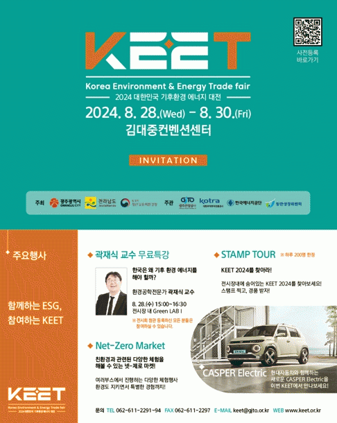 광주광역시는 오는 28일부터 30일까지 김대중컨벤션센터에서 ‘ 2024 대한민국 기후환경에너지대전(KEET 2024)’을 개최한다.