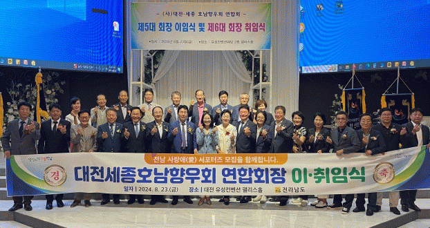 정경수 신임 회장은 인사말에서 “60만 향우 회원과 뜻을 모아 더욱 자랑스러운 대전세종호남향우회 연합회가 되도록 하겠다”며 “전남 사랑애 서포터즈 홍보와 모집에도 앞장서 지역사회와 고향 발전에 헌신하겠다”고 말했다.