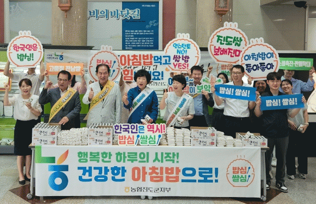 이날 캠페인에는 김희수 진도군수와 박금례 진도군의회 의장, 김명효 농업지원과장, 농협 진도군지부장 등이 참여해 진도쌀로 만든 백설기를 군청 직원들에게 나눠주고 아침밥 먹기 운동에 동참해 줄 것을 독려했다.