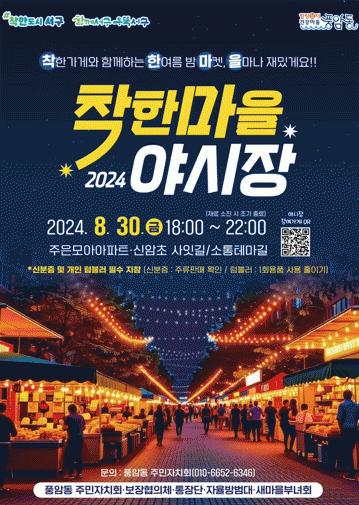 김이강 서구청장은 “착한마을 야시장 속에서 함께 하는 따뜻한 공동체의 정을 느껴가길 바란다”며 “앞으로도 풍암신암로 일대에서 주민 삶의 질 향상과 지역 상권 활성화를 위한 다양한 프로그램을 운영하며 마을에 선한 영향력을 확산해 나가겠다”고 말했다.