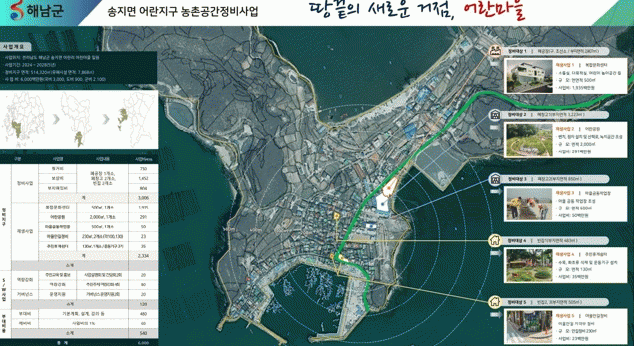 한편, 해남군은 현산면 월송지구 50억원, 산이면 금호지구 127억원 등 2개소가 농촌공간정비사업에 기존 선정되어 기본계획 수립 등 사업을 추진하고 있다.
