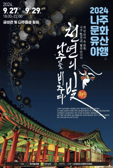 전라남도 나주시(시장 윤병태)는 오는 9월 27일부터 29일까지 3일간 나주읍성 일원에서 ‘2024년 나주 문화유산 야행’ 행사를 개최한다고 29일 밝혔다.