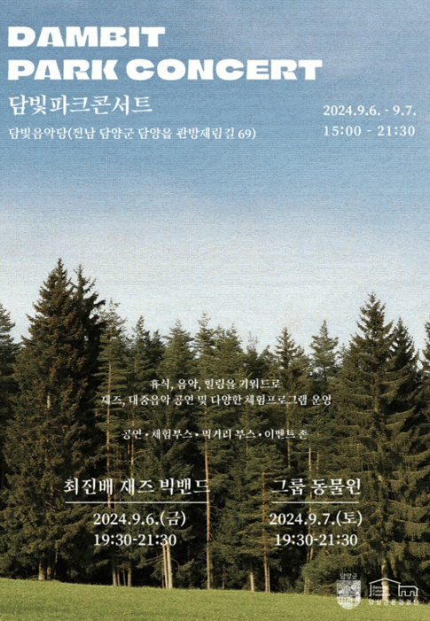 ‘담빛 파크콘서트’는 담양군과 담양군문화재단이 주최하는 공간 특화 사업으로, 휴식과 음악을 접목한 복합문화프로그램이다.