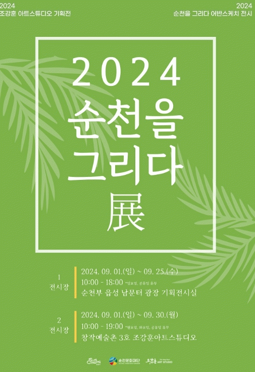 전시는 1전시장(순천부 읍성 남문터 광장 기획전시실)과 2전시장(창작예술촌 3호 조강훈 아트스튜디오)에서 진행될 예정이며, 자세한 내용은 순천문화재단 누리집 에서 확인하거나 순천 창작예술촌 3호 조강훈 아트스튜디오로 문의하면 된다.