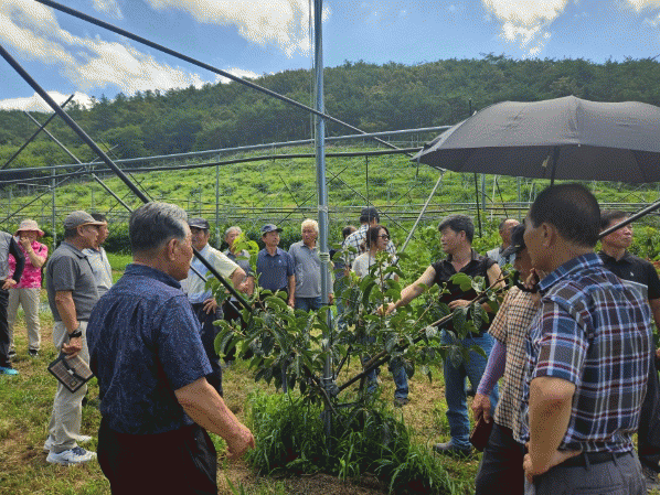 현장에서 농업인들은 신품종 단감의 전정 방법, 적과 기술, 토양 관리 등 세부적인 재배 기술을 학습했다.