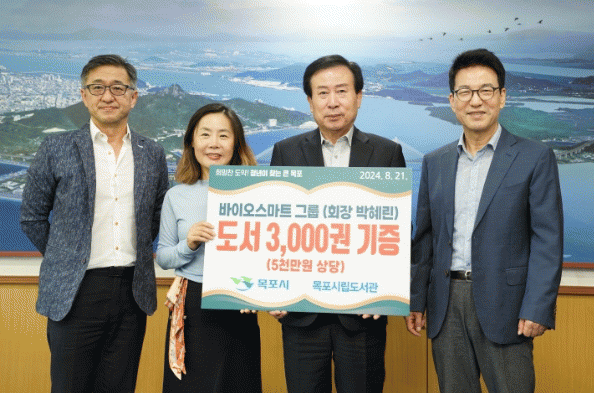 한편, 목포시립도서관은 올해 신간 도서와 이용자 희망도서 확보에 어려움을 겪었으나, 이번에 바이오스마트그룹 도서 기증과 시민들의 책 기증 운동에 힘입어 평년 규모의 도서 확충 목표를 이룰 수 있게 됐다.