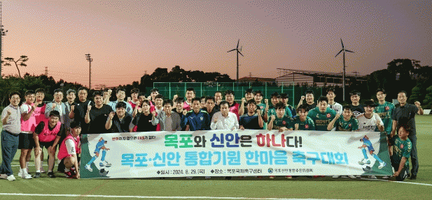 이날 축구대회는 목포・신안 통합을 기원하고 양시군 지역민의 우호를 다지기 위해 진행됐다.