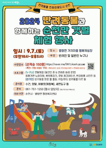 또한, 비반려인도 즐길 수 있는 일반인 갯벌체험장, 동물가면 노래자랑, 룰렛 돌리기, 갯벌 레크레이션 등 다채로운 프로그램도 준비되어 있다.