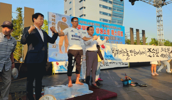 고흥군 관계자는 “국제환경운동가로 맨발의사나이 조승환의 얼음위 맨발 오래서있기 51회 도전과 5시간 5분의 세계신기록경신을 진심으로 축하한다”고 전했다.