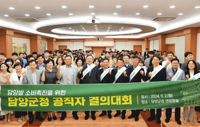 담양군(군수 이병노)은 지난 2일 군 공직자 2백여 명이 참석한 9월 정례 조회에서 쌀 소비 촉진 결의대회를 열고 ‘담양쌀을 사고, 먹고, 선물하자’는 결의를 다졌다.