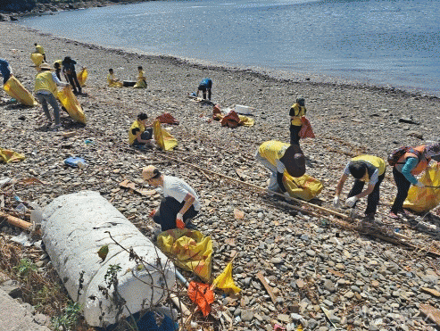 이번 활동에 여수해양환경인명구조단과 한영대학교, 여수꽃사모, 무지개음악단 자원봉사자 등 60여 명이 참여한 가운데 폭염 속 해양쓰레기 줍기를 진행했다.