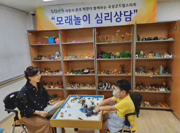 ‘모래놀이 심리상담’은 자연스런 치유능력을 촉진하는 비언어적 치료 방법으로, 규격화된 모래상자 안에서 인형, 피규어, 물 등 다양한 소품을 활용해 아동들의 생각을 자유롭게 표현할 수 있도록 하며, 내면의 힘을 길러 상처를 스스로 치유할 수 있도록 해주는 심리치료다.