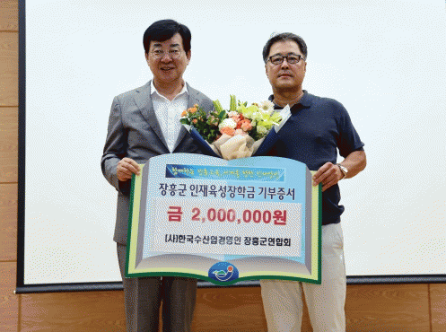 장흥군연합회는 제17회 정남진 장흥물축제 대표적인 체험 프로그램인‘대왕 장어를 잡아라’운영 수익금 전액을 이날 장학금으로 기탁했다.