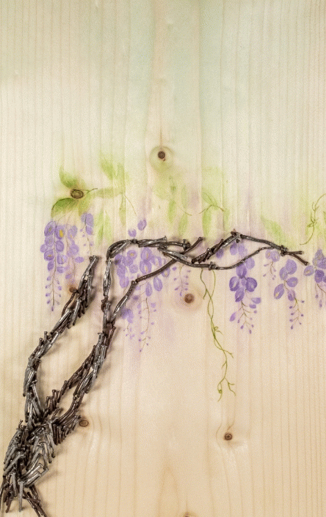 못으로 그린 작품들의 주제는 크게 3가지로, 꽃, 강아지(양갱이), 동화책이다. 금속을 작품의 재료로 사용해 차가울 것이란 편견과 달리 목재 채색과 따뜻한 작품의 주제가 마음을 포근하게 하는 매력을 주고 있다.