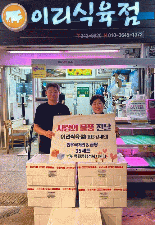 이리식육점은 목원동 사랑나눔가게 16호점으로 지난 2020년에 등록되어 매년 명절과 가정의 달에 한우국거리와 곰탕을 지속적으로 기탁하고 있다.