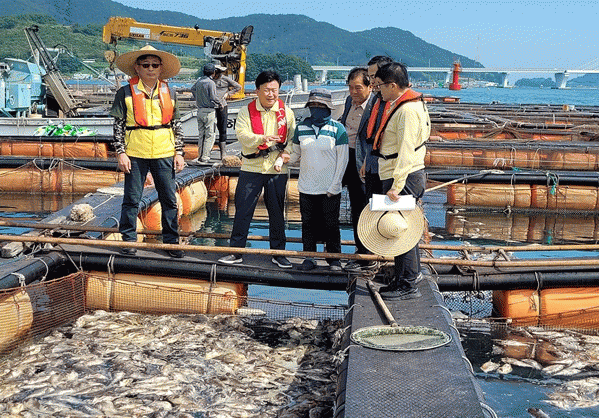 여수시가 지난 8월까지 접수한 폐사 피해 신고는 조피볼락 367만 6,000마리, 피해액 73억 2,700만 원으로, 시는 복구지원을 위해 피해조사단을 편성하여 조사를 진행하고 있다.