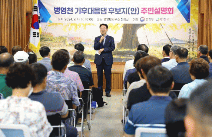이날 설명회는 환경부 박병언 물관리총괄과장, 곽명안 영산강유역환경청 유역계획과장, 전라남도 박승영 수자원관리과장, 한국수자원공사 본사 한상구 처장 외 관계기관을 비롯해, 강진원 강진군수, 서순선 강진군의회 의장, 주남식 병영면 지로이장 등 총 100여 명 이상의 지역 주민이 참석한 가운데, 기후대응댐의 필요성과 사업 절차 및 보상지원, 질의응답 순으로 진행됐다.