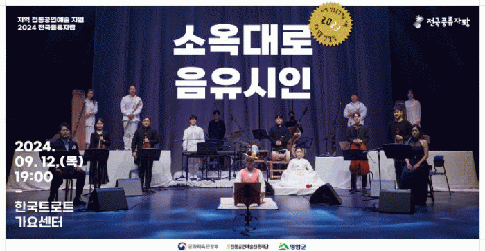 (재)전통공연예술진흥재단의 우리 음악 집단 ‘소옥’이, 이달 12일 저녁 영암군의 한국트로트가요센터에서 ‘소옥대로(大路)_음유시인’ 공연을 연다.