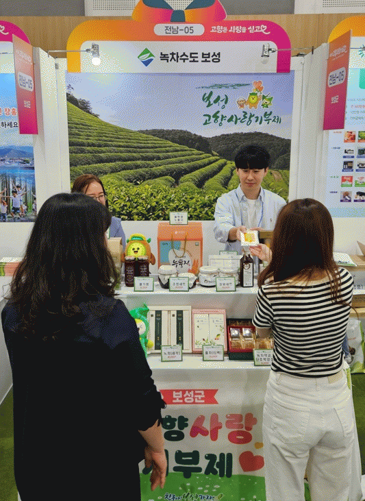 고향사랑기부제 홍보관 전시 및 이벤트로 마련된 보성군 홍보부스는 고향사랑기부 방법과 혜택 등의 정보를 안내, 홍보하고 쌀, 잡곡, 차류, 장류, 녹차 약과, 녹차 한과, 올벼쌀 누룽지, 공예품 등 다양하고 매력적인 답례품을 전시한다.