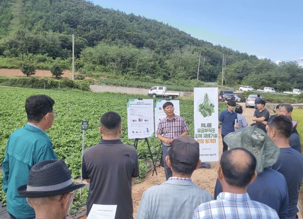 지난 5월 30일 실시한 중간 평가회에 참석한 농가들은 곤드레 생육 상황과 제초 효과를 직접 확인하며, 여름 파종기에 2ha 면적을 선제적으로 유공 부직포 피복재배로 전환하기도 했다.