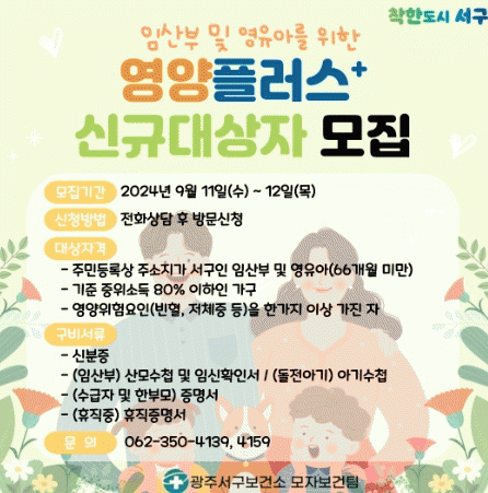 서구는 신청자를 대상으로 영양위험요인인 빈혈검사(혈중 헤모글로빈 농도 측정), 신체계측(신장 및 체중 측정), 영양섭취상태 조사(24시간 회상법) 등을 실시하고 이를 바탕으로 최종 대상자 50가구를 선정할 계획이다.