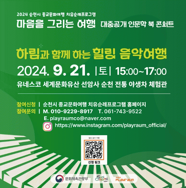 오는 21일 오후 3시, 순천 선암사 전통야생차 체험관에서 진행되는 첫 대중공개형 프로그램은 음악과 인문학을 결합하여 참여자들에게 마음의 평안과 치유를 제공하고, 깊이 있는 성찰과 감동을 선사할 예정이다.