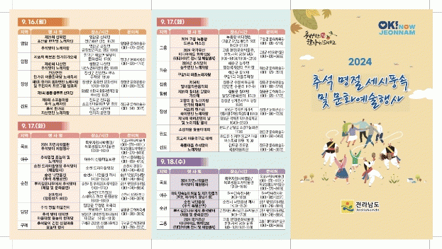 추석맞이 세시풍속 놀이와 문화행사에 대한 자세한 내용은 전남도 누리집 도정소식-그래픽뉴스를 참고하거나 시군 문화관광부서 등에 문의하면 된다.