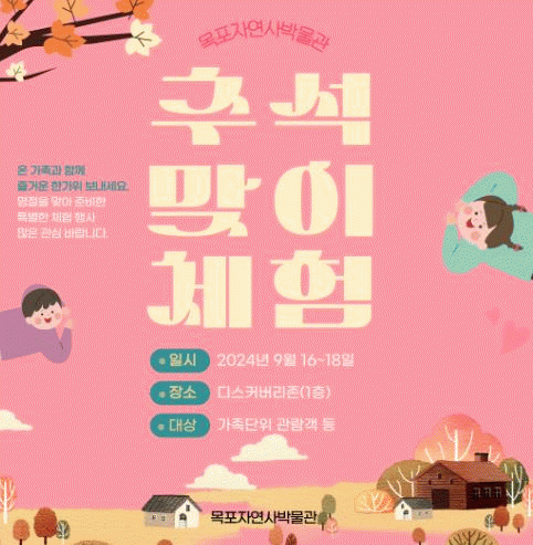자연사박물관은 추석 연휴 기간인 오는 16일부터 18일까지 3일 동안 추석맞이 체험행사를 진행한다.
