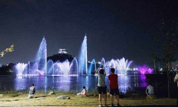 대중가요, 트롯, 댄스 등 음악에 화려한 야간 조명을 더해 고사분수, 안개분수 등 10여 종류의 화려한 분수 쇼를 연출한다.
