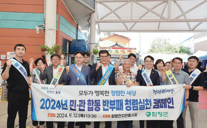 한편, 부패 없는 청렴한 함평을 만들기 위해 지난 5월 출범한 '함평군 반부패・청렴실천 민・관협력체'는 민간기관과 공공부문이 협력하여 구성된 협의체로, 이는 2024년 함평군 반부패 청렴시책의 3개 분야 30개 청렴 시책 중 하나이다.