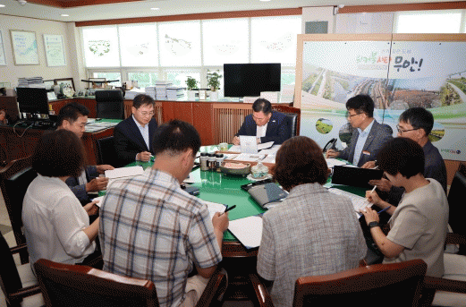 회의를 마치고 김산 군수를 비롯한 부군수, 기획실장 등은 공직사회의 관행적 부패를 척결하고 공정한 사회를 조성하는데 모범이 될 것을 다짐하는 청렴 서약서에 서명하여 “부패없는 청렴무안”을 위한 청렴 실천 의지를 다짐하는 시간을 가졌다.