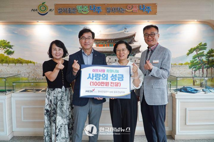 이날 기탁식에는 김윤희 나주시 복지환경국장과 이철승 건강관리협회 부장이 참석해 따뜻한 나눔의 의미를 나눴다.