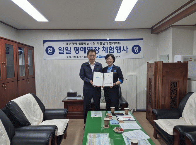 이정호 광주관리역장은 “바쁘신 와중에도 일일 명예 역장 체험 행사에 함께 해주신 신수정 의장님께 감사드린다”며 “지역과 활발히 소통하여 함께 성장하는 코레일 광주역이 되도록 노력하겠다”고 밝혔다.