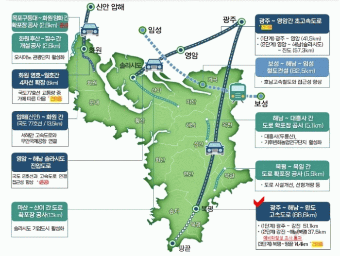 지난달에는 광주~완도간 고속도로 2단계 사업이 정부 예비타당성조사를 통과했다.