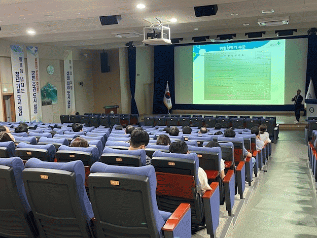 강사로 나온 정효석 산업안전보건공단 전남지역본부 건설안전부장은, △공사 발주자의 개요 △발주자의 역할과 책임 △위험성 평가와 관리 등을 알렸다.