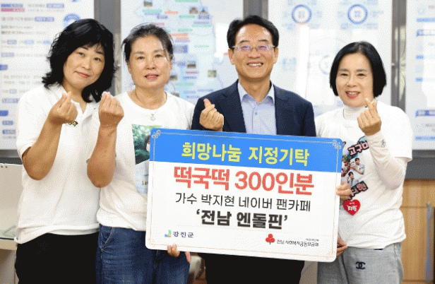 ‘전남 엔돌핀’은 박지현 가수를 사랑하는 팬들이 모인 네이버 팬카페로, 무안군, 화순군, 장흥군, 광주 동구청 등 지역 사회에 꾸준히 기부 활동을 이어오고 있다. 이번 기탁도 그러한 일환으로 진행됐다.