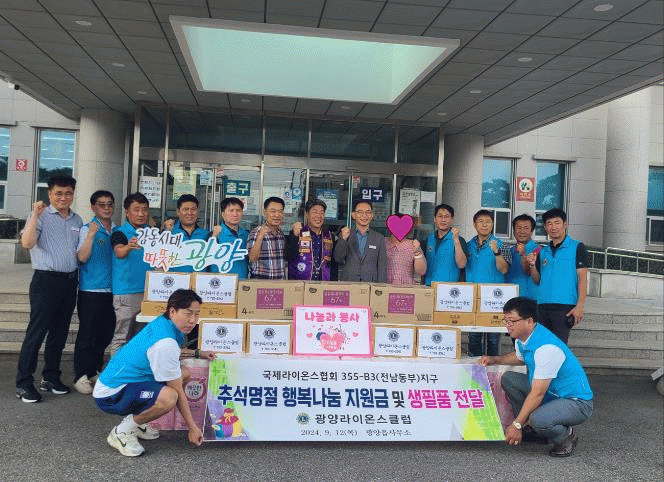 광양라이온스클럽은 경로당 사랑의 봄 이불 전달, 추석맞이 방역 지원 등 매년 꾸준한 나눔 봉사를 현장에서 실천하며 지역사회에 선한 영향력을 미치고 있는 사회단체다.