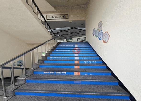 계단 벽면에는 계단 오르기 효과 및 스트레칭 관련 스티커를 부착하여 일상 속 건강생활실천을 강조했다.