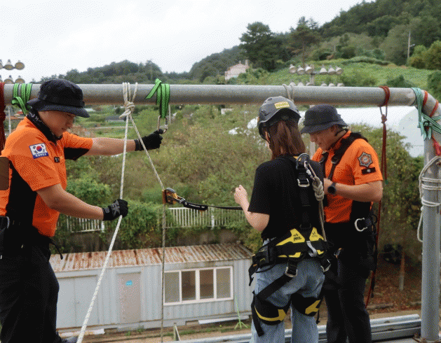 이번 안전체험은 나주소방서 훈련탑에서 ▲완강기 이론 ▲완강기 장비 착용·사용법등을 익혀 직접 하강하는 안전체험 형식으로 진행됐다.