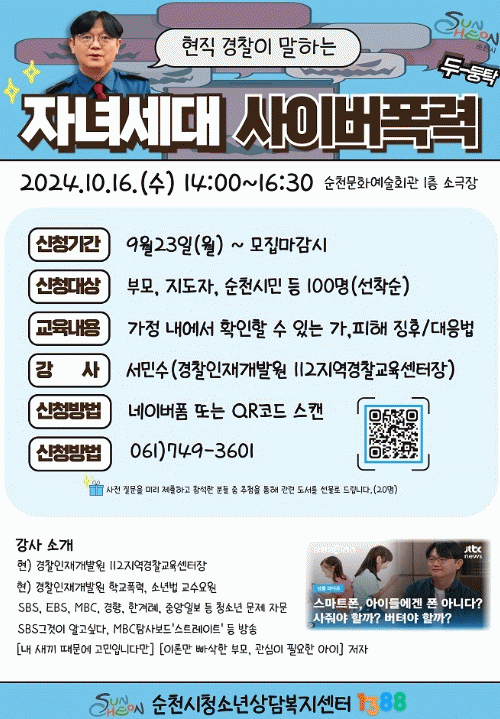 시 관계자는 “최근 증가하는 사이버 폭력과 범죄의 현황을 이해하고, 양육자의 적절한 대응을 통해 자녀의 안전을 지키는 실질적인 도움의 장이 될 것이다”고 전했다.