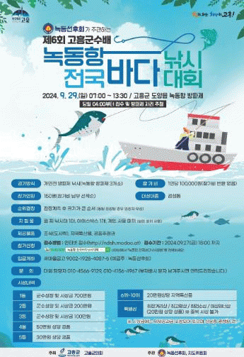 이번 낚시대회는 참가비 10만 원으로 남녀노소 누구나 참가할 수 있으며, 참가 신청은 오는 27일까지 온라인(네이버 ‘녹동항 전국바다낚시대회’ 검색)을 통해 선착순 150명 사전접수를 받는다.