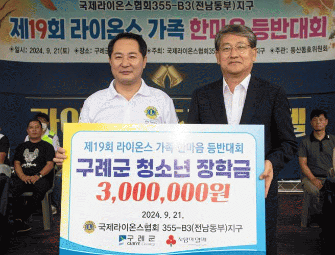 김순호 구례군수는 “지역사회와 함께 상생하고 동행하려는 마음을 실천해 주셔서 깊은 감사를 드린다”며, “청소년들이 걱정 없이 학업에 전념하여 미래 발전을 위한 큰 인재가 될 수 있도록 군에서도 함께 노력하겠다”고 화답했다.