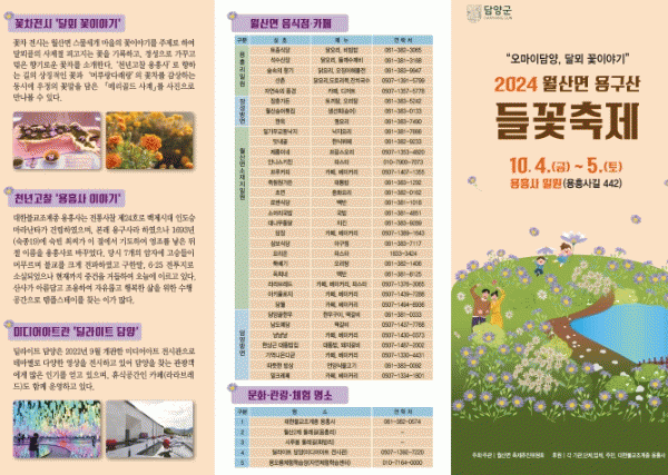 국중문 월산면 축제추진위원장은 “월산면의 숨은 매력을 알리고 많은 방문객이 축제장을 찾아와 즐기는 담양군의 대표 가을 축제로 거듭날 수 있도록 준비에 총력을 기울이겠다”라고 밝혔다.