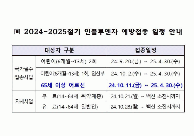 접종은 어린이(6개월부터 13세), 임신부, 어르신 등 대상자별로 순차적으로 이루어진다.