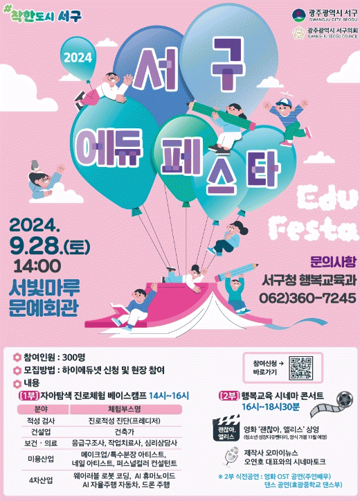 김이강 서구청장은 “AI, 빅데이터 등 4차 산업혁명 시대 도래와 함께 교육 환경도 빠르게 변화하고 있으며 그에 따라 미래 인재상도 변화하고 있다”며 “청소년들이 입시 중심의 경쟁체제에서 벗어나 스스로 적성에 맞는 진로와 직업을 탐색하고, 자기주도적인 삶을 살 수 있도록 다양한 교육지원 사업을 이어 나가겠다”고 말했다.