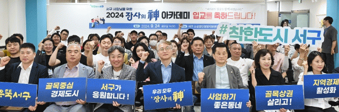 김이강 서구청장은 “아카데미가 실효를 거두기 위해서는 교육을 통한 장사 노하우를 배우는 것에 그치지 않고 이것이 지역 골목상권 곳곳에 널리 파급되는 것이 중요하다”며 “이를 위해서 아카데미 참여자 모두가 ‘장사의 신’으로 거듭나 내 가게뿐만 아니라 주변의 소상공인들이 함께 발전하는데 매개체 역할을 해주길 바란다”고 말했다.