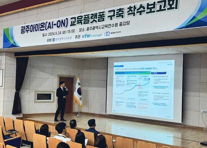 시교육청은 지난 24일 광주교육연수원에서 디지털 선도학교와 AI정보교육중심학교 관계자, 개발 용역사 등이 참석한 가운데 ‘광주아이온(AI-ON) 구축 착수보고회’를 개최했다.